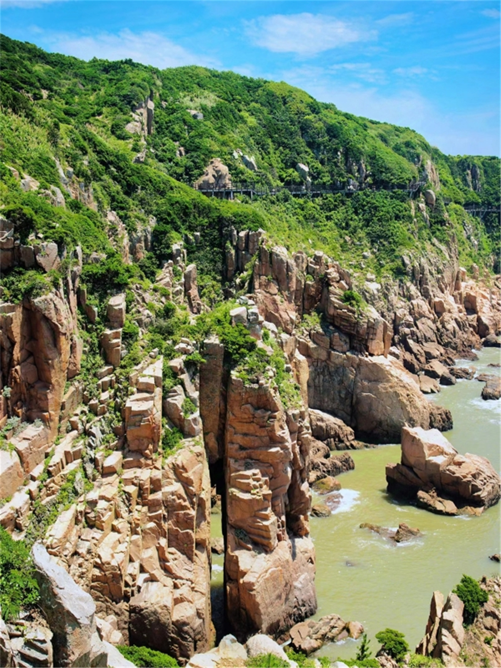 活动2:如果你是第一次来嵊泗,可以去【六井潭景区】(自费),这里有让人惊叹的绝壁海景——蜿蜒千米的木栈道沿悬崖而筑,凭栏而望能看见滚滚浪涛,非常过瘾。