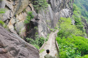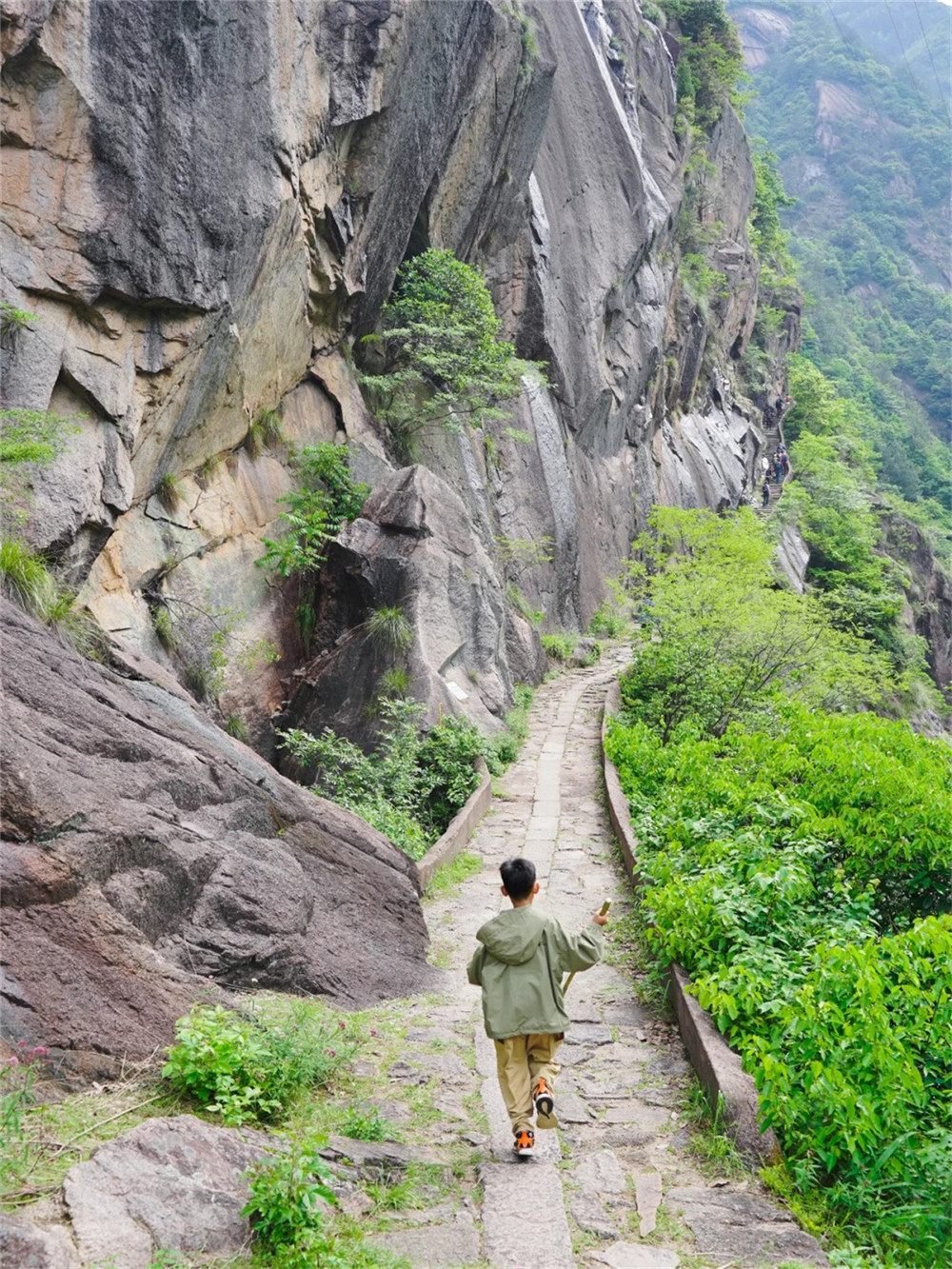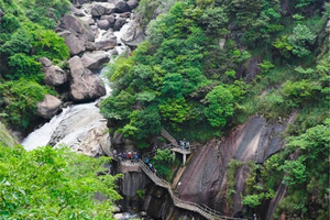 早餐后整理装备,沿着平整的小路往黄茅培方向前进,行进中,听着山泉,累了抬头望望天,望望周遭的山,引鼻以享清风,趁着如此纯色,这种感觉,真心觉得很是畅快。到达江南第一关后你尽可以在那儿尽情一览这青山秀水之美,一偿当年行脚贩货之辛劳。继续前行走上悬崖栈道,上一路上一直能听到的潺潺的山泉声,徒步千年古道,观赏一路美景,峡谷幽深,怪石嵯峨,云烟曼妙,溪流奔腾,绿意葱茏,古韵悠悠……之后经过逍遥谷后抵达景区出口