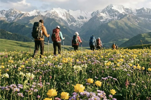 早餐后告别八卦城,前往伊犁草原的课代表—后来居上的喀拉峻草原,也是伊犁河谷海拔最高的草原,四周临崖,是真正的空中草原,驱车前往布拉克门票站,再换乘区间车进入喀拉峻草原,经石泉、马场、乌孙夏都、喀拉峻申遗博物馆到达鲜花台,开启我们徒步旅行:从鲜花台出发向南翻越草坡到达三级夷平面观景台(夷平面是一个地质词汇,说简单一点其实就是立体草原),秃鹰在库尔代大峡谷中盘旋,远眺巍峨延绵不断的雪山(南天山),面对峡谷对面的“花斑森林”,我们就在这极美的富氧场地享用带来的路餐美食。然后前往猎鹰台,了解新疆猛禽的知识,夜宿喀拉峻毡房,感受草原哈萨克族鲜活的游牧生活。