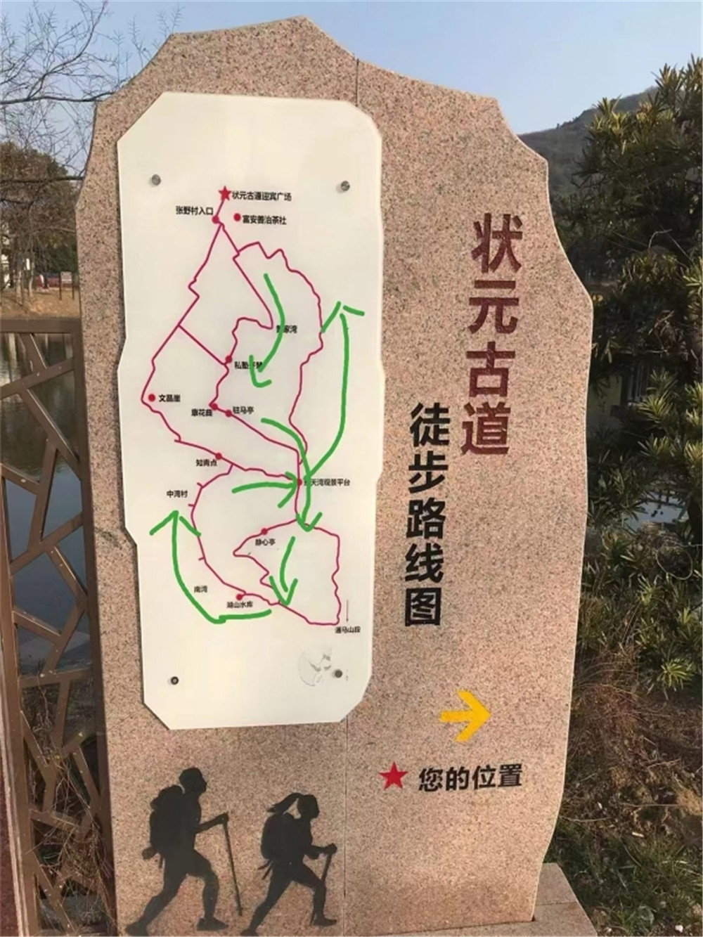 10:00 左右我们来到状元古道入口,带队会带领大家做热身, 开始我们的徒步行程。我们穿过丛林,岭道曲折蜿蜒,山林浓密悠长。不知不觉便到达山顶,眼前是一望无际的太湖。一路还能打卡许愿墙,及状元古道标志性地标。