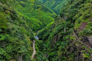 里黄弹景区以悬崖峭壁、溪涧蜿蜒