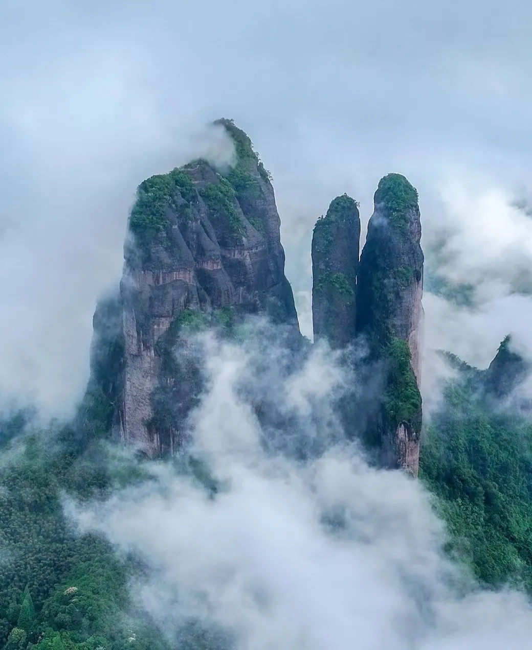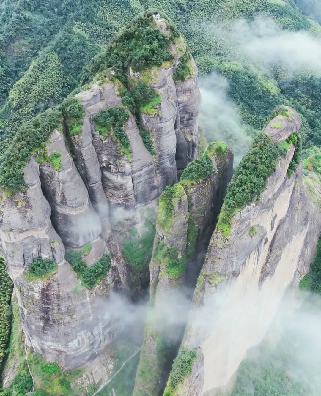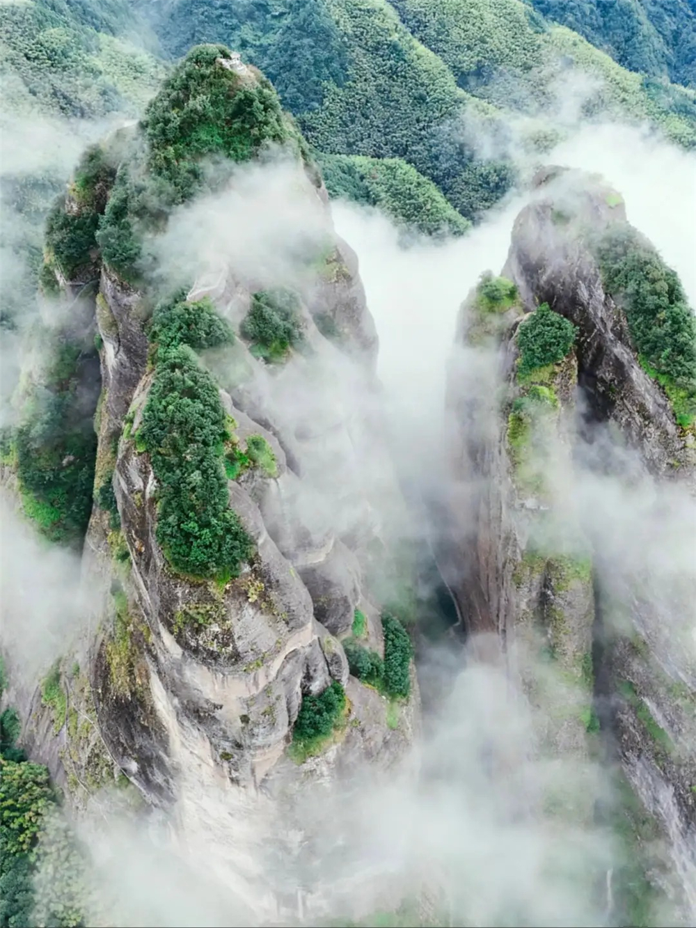 山中两重天,奇峰险壑,乔木参天