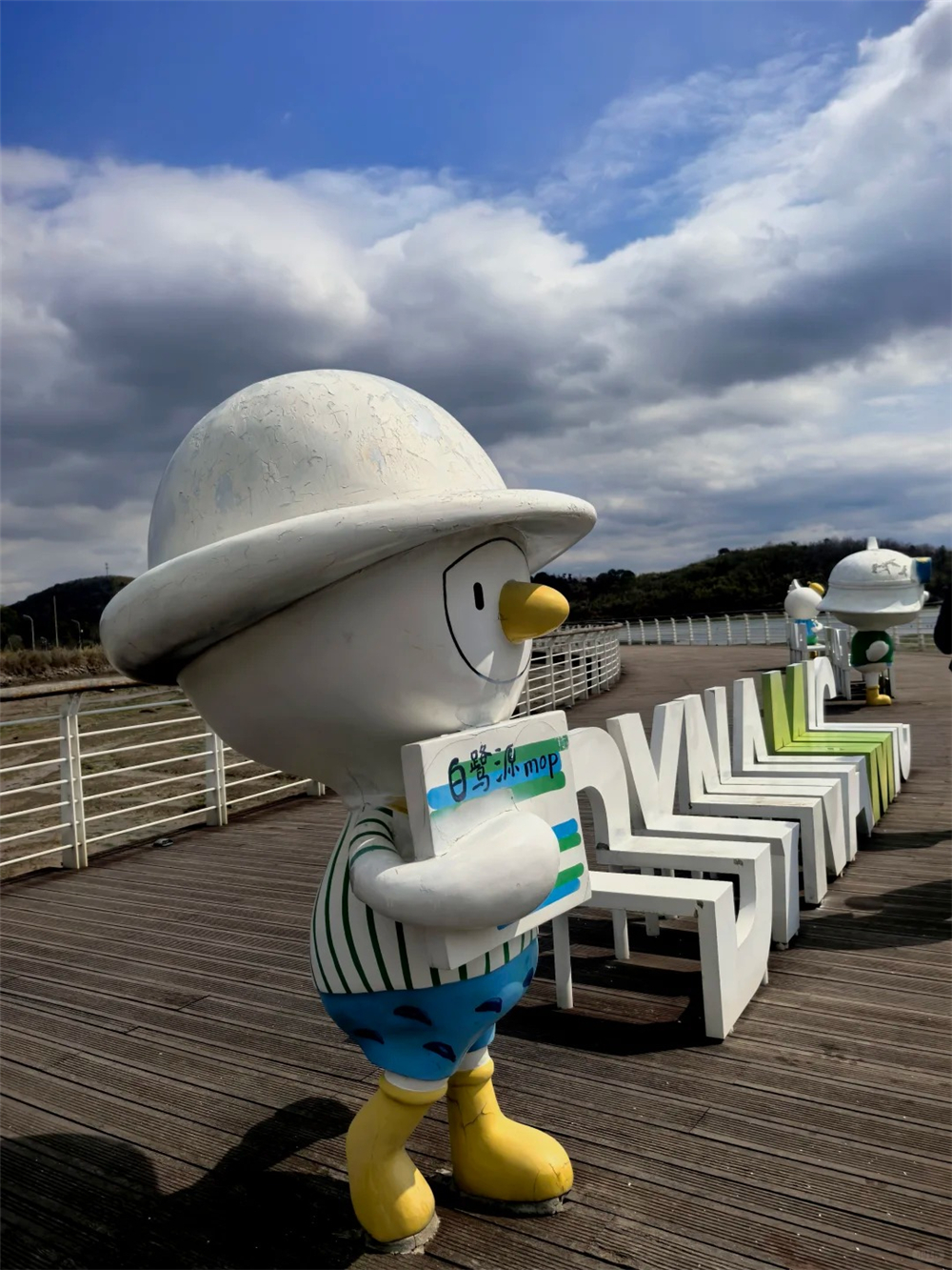 11:00左右,到达宁波湾天妃湖,全程14公里环湖闭环,平缓无难度,新手友好。串联吉尼斯海上浮桥福桥、天妃之戒、爱心廊架、桐照渔港、风车山、堤坝碧湾,一步一景。一路碧海蓝天、湖光与海风相伴,可徒步、可骑行。