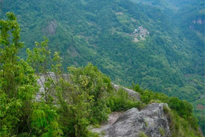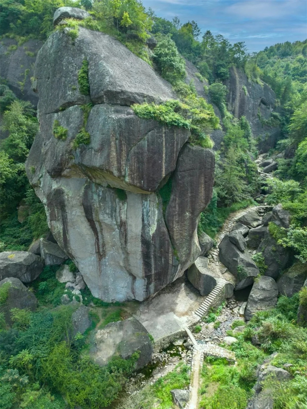 集丹霞地貌,大石头顶,野路,树林,竹林,溯溪多种风景,路线的徒步道