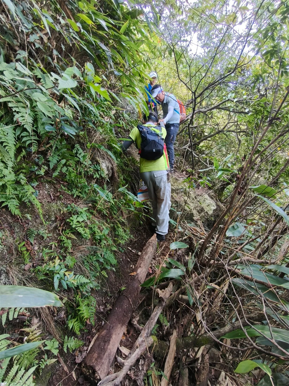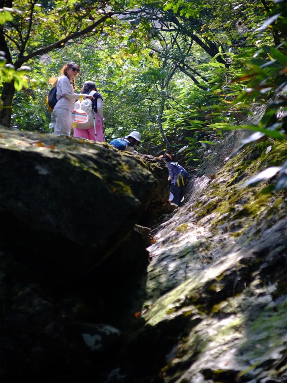 11:00 左右,抵达南屿山脚,大家下车伸展开身体后开始徒步,攀登中可以看到峡谷瀑布,黑石古道,寺庙遗址,巨木栈道,更有高百余米的悬崖峭壁,各种怪石比比皆是,适时择地路餐。餐后休整继续前行!